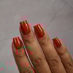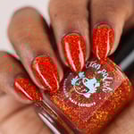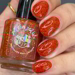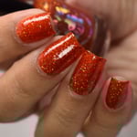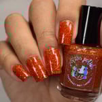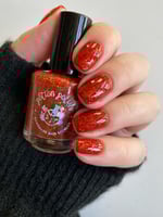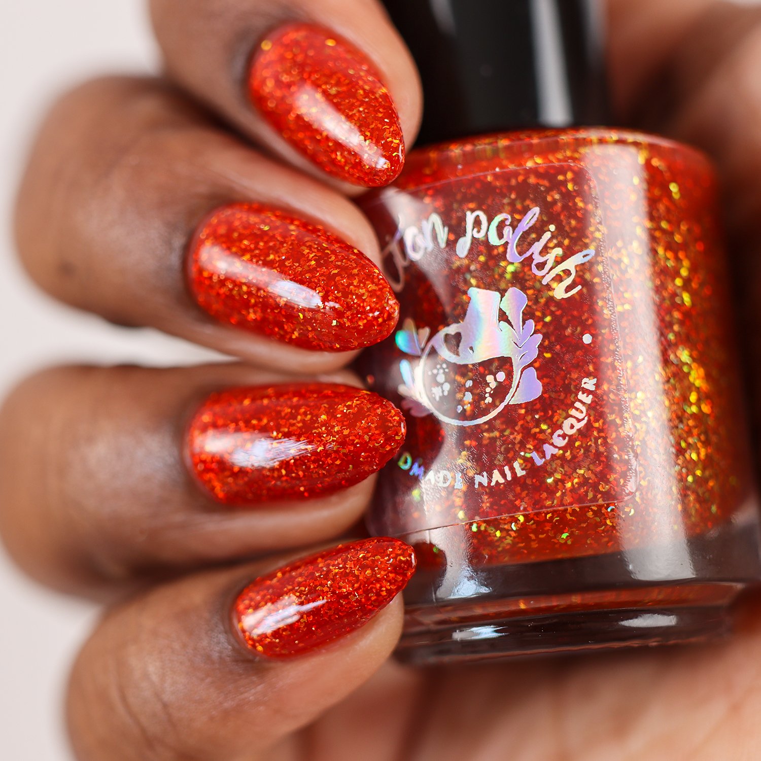 Originally released in 2021, this polish is back with a little twist for a limited time. Slightly different from the original, the 2.0 version is a little deeper in color and has a touch of holo flakes for added sparkle! Fallen Leaves 2.0 is a burnt orange jelly with orange and gold holo micro pieces and holo flakes. ** Polish is highly pigmented so just be sure to use base coat to prevent staining! **